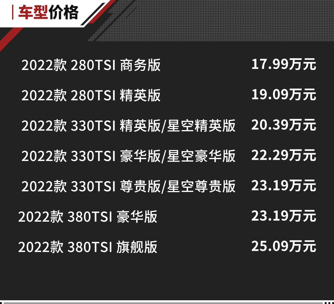 动力系统方面,新车将继续搭载1.4TSI和2.0TSI高低功率三种动力系统,最大功率分别为150马力、186马力和220马力,峰值扭矩为280牛·米、330牛·米和380牛·米,传动系统均匹配7挡双离合变速箱。