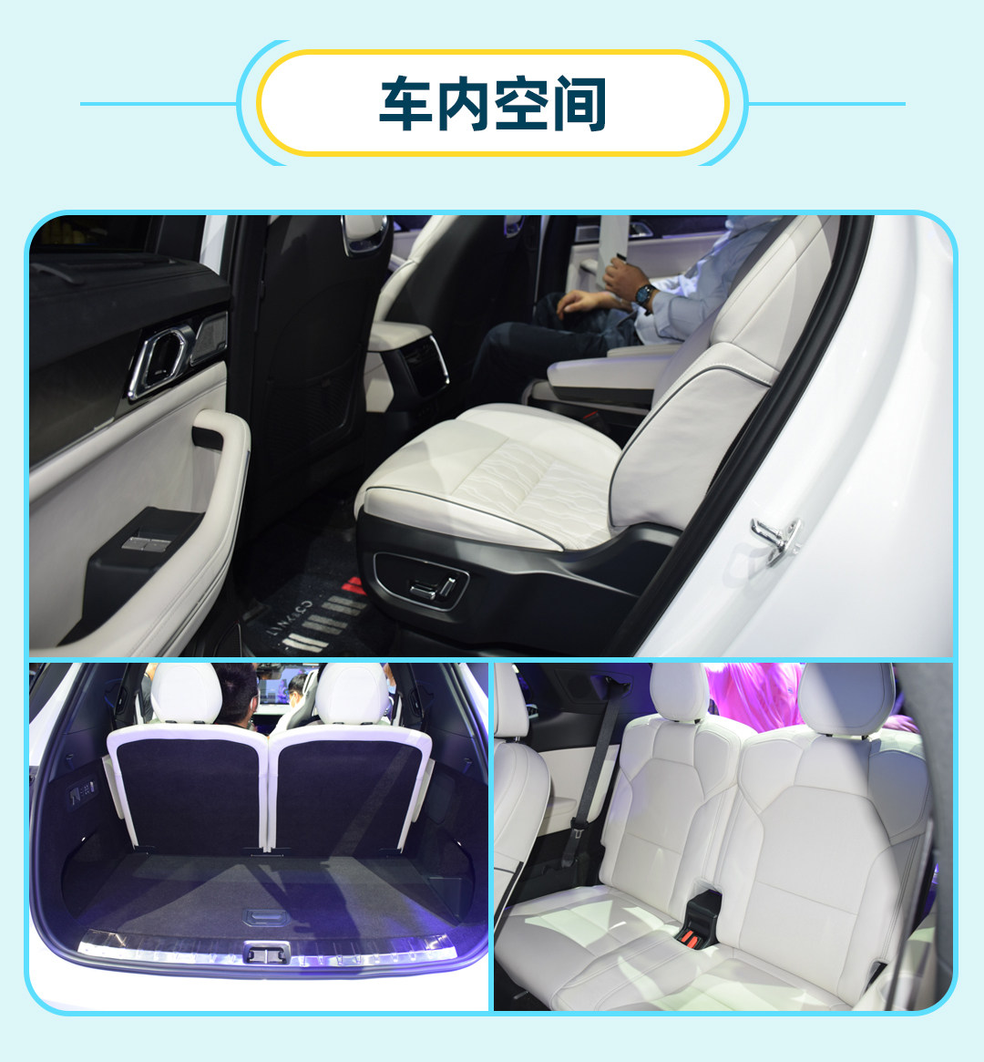 在空间方面,领克09提供2+2+2的6座布局,第二排两个独立座椅能获得最佳的乘坐感受,第三排的空间属于6/7座SUV的主流水平,不算特别出色。