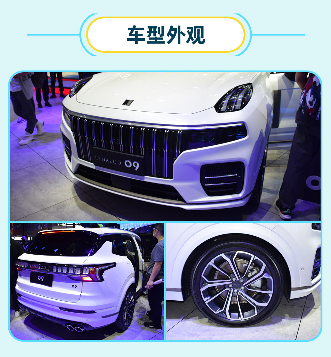 外观方面,领克09与旗下其他车型进行了区分,虽然在前脸依旧保留了标志性的分体式灯组,但是在前格栅处采用了全新设计的直瀑式格栅,镀铬的材质彰显出精致和豪华感。下方灯组与大尺寸直瀑式前格栅完美融合,形成T字形造型,搭配三段式进气口,整体气势更强。