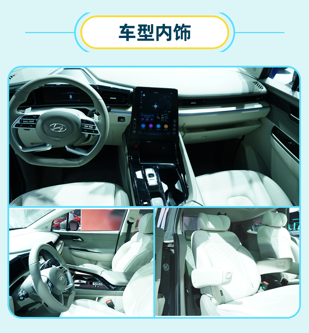 进到车内,整体内饰风格非常简洁时尚,并没有采用家族式最新双连屏设计,而是融合家族其他车型设计的精髓,像四辐式平底多功能方向盘与现代索纳塔如出一辙,10.4英寸中控竖屏与现代ix25也极为相似,同时还有大尺寸全液晶仪表盘以及按键式的换挡机构,在科技氛围的营造上还是比较到位的。