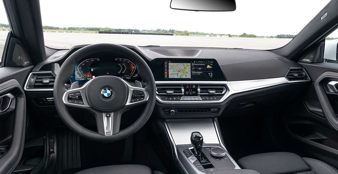 内饰依旧是浓厚的宝马家族风格,从方向盘再到中控的整体布局设计,全新宝马2系Coupe并没有给你太过运动的内饰氛围感。但多功能皮革方向盘、运动型座椅得到了标配。另外在M240i xDrive版本采用Alcantara/Sensate的用料搭配。