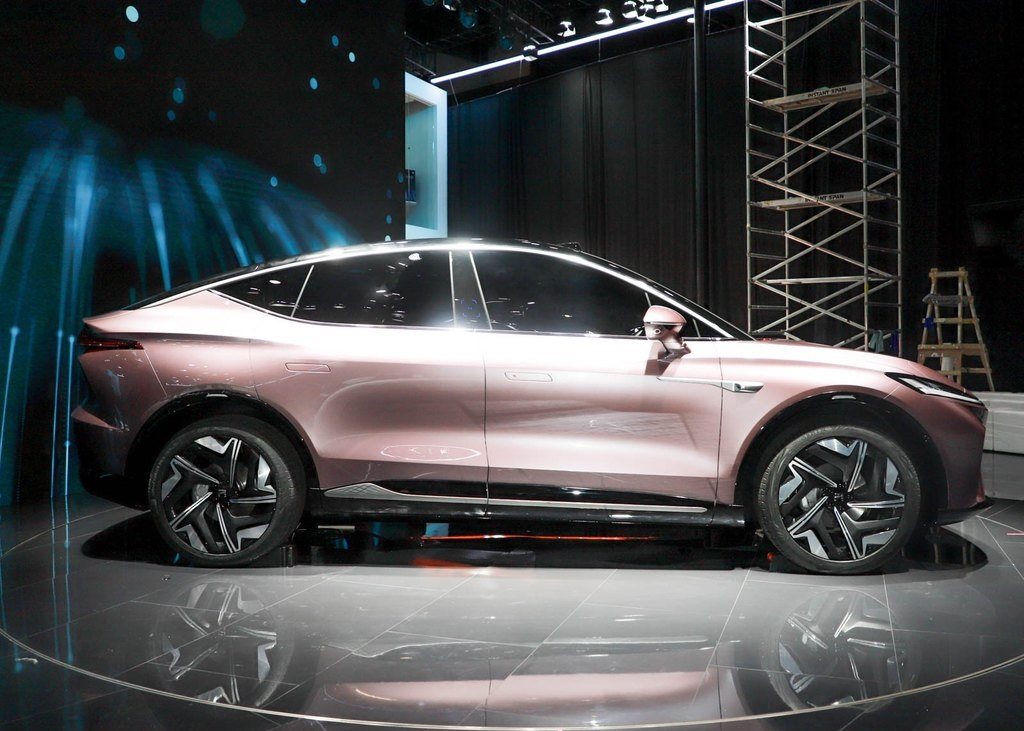 作为一款纯电动车型,新车采用了低风阻的流线型设计,溜背式的造型紧跟潮流,而且值得注意的是,与概念版相比,新车配备了实体后视镜,但隐藏式门把手以及B柱的感应式门锁设计得到了延续。