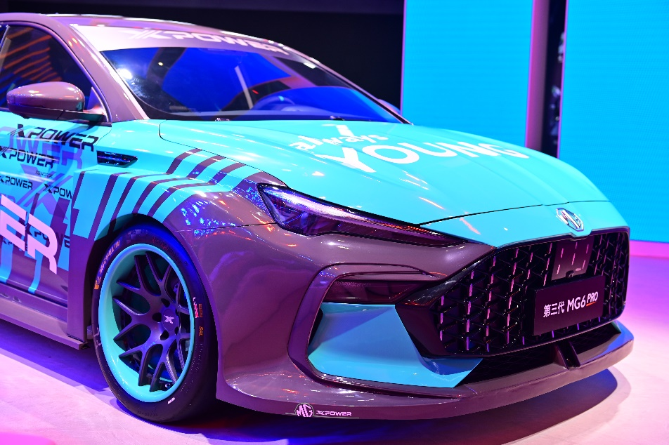 上市不久的新生代极致运动轿跑第三代MG6 PRO同样大放异彩。自第一代MG6以溜背造型开辟运动轿跑细分市场,成为运动轿跑开创者以来,第二代车型又以优异的操控性能将运动属性发挥到极致,第三代更以智活科技战力全开,巩固MG6在运动轿跑细分市场的引领者地位。第三代MG6 PRO则凭借更极致的产品表现,在年轻群体中实力圈粉。潮改认证团成员、MG XPOWER首席体验官董又霖以“绝不跟随、只接受追随”的态度对其进行了改装并送到车展现场展览,与爱好个性改装的年轻人一起分享潮改体验。