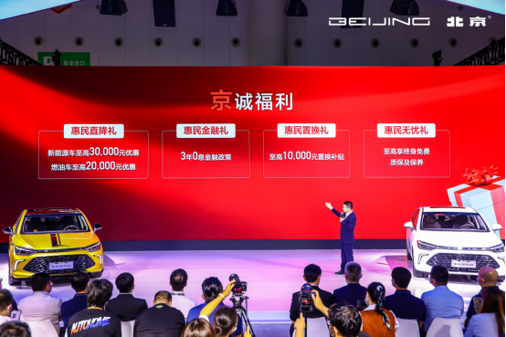 “京诚福利”是指活动期间,购买北京汽车旗下新能源车可享至高3万元惠民优惠,购买燃油车可享至高2万元优惠,以及至高1万元置换补贴、3年0息金融政策、终身免费质保、终身免费保养等一系列超值福利。以购买“十万级大码SUV”北京X7为例,不仅可享受高达9000元的购车优惠,亦可享受11万元定额贷3年0息金融政策、最高8000元的置换补贴以及终身免费质保及保养服务。