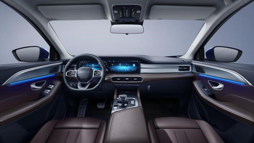 新车依然采用捷途汽车家族徽城翘楚式前格栅,搭配星阵式LED组合大灯与流光式LED尾灯,首尾呼应一气呵成,提升辨识度的同时提升行车安全性。20寸超大轮毂将强劲动力转化为速度,尽显不凡。车内的12.3英寸双联屏、运动时尚console造型设计与62英寸欢乐共享全景天窗,彰显大的同时,以科技带来更多驾乘乐趣。