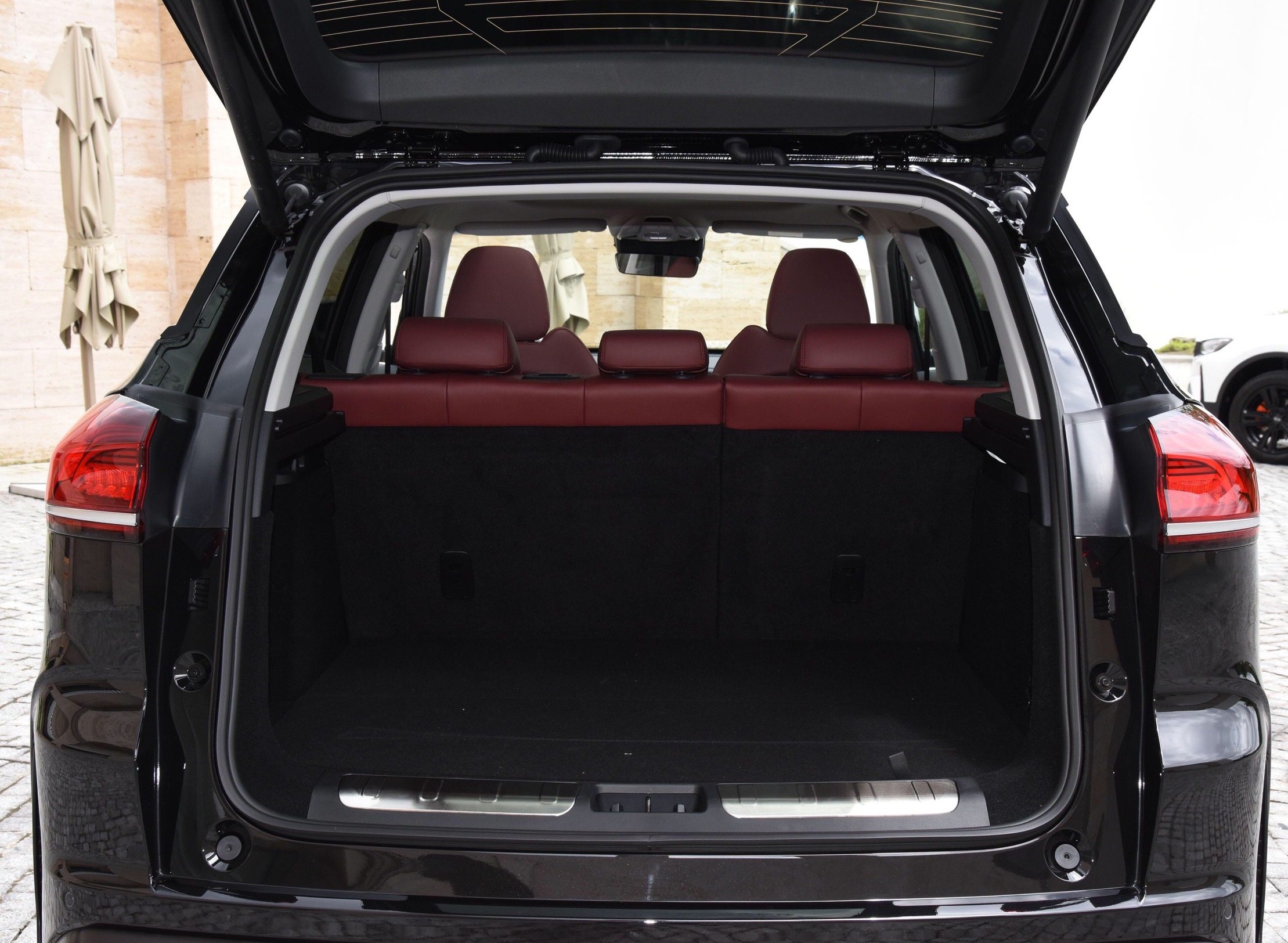 后备厢的整体空间表现也是比较不错的,并且非常平整,另外在左右两边也有储物格和储物袋。唯一不足的地方就是后排座椅放倒之后并不能形成一个纯平的状态。