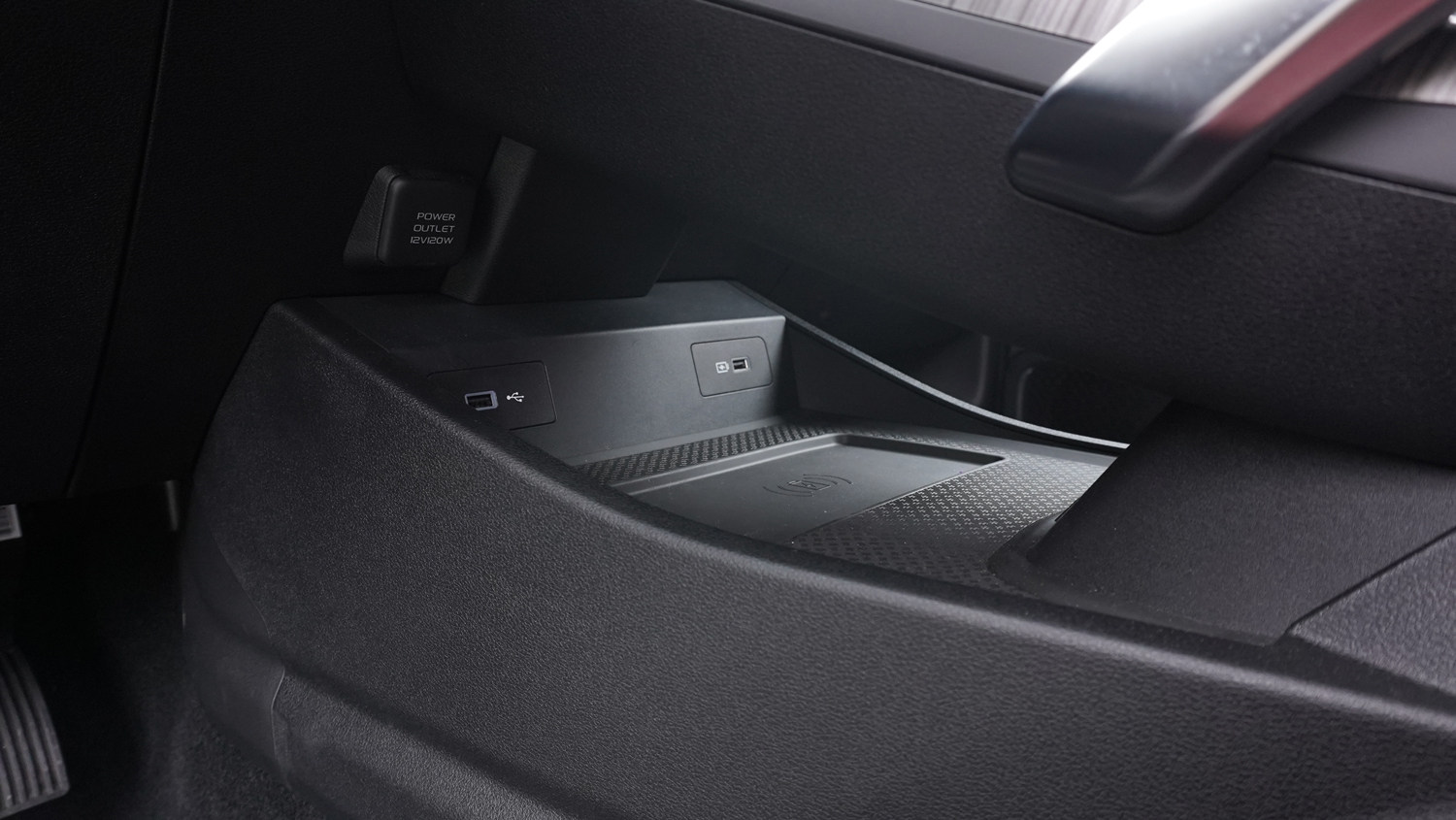 储物空间方面,除了门板这些常规的储物空间,在中控台下方也设计了一个储物槽,并且还有一个无线充电板,另外手套箱的深度也比较可观。