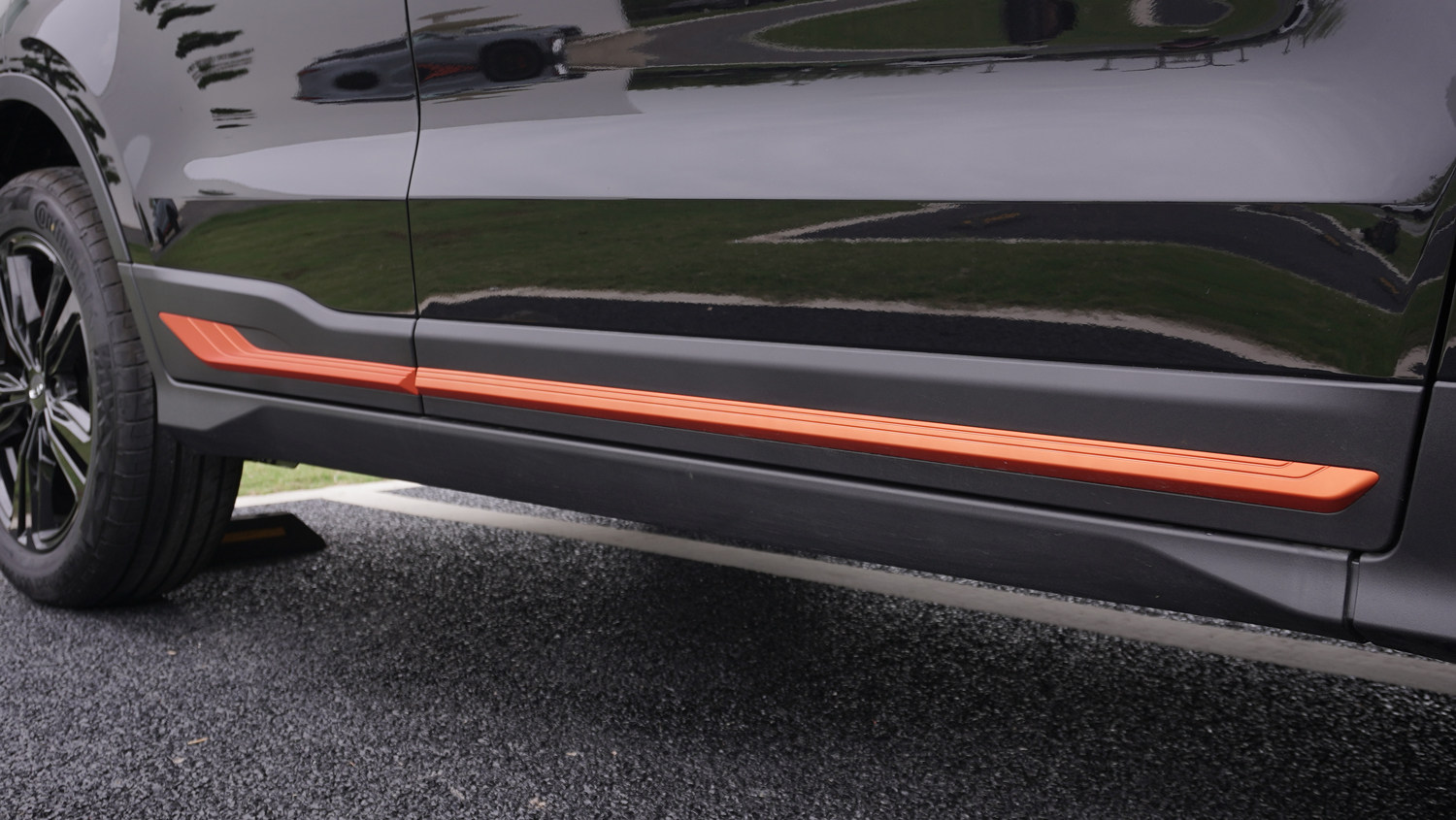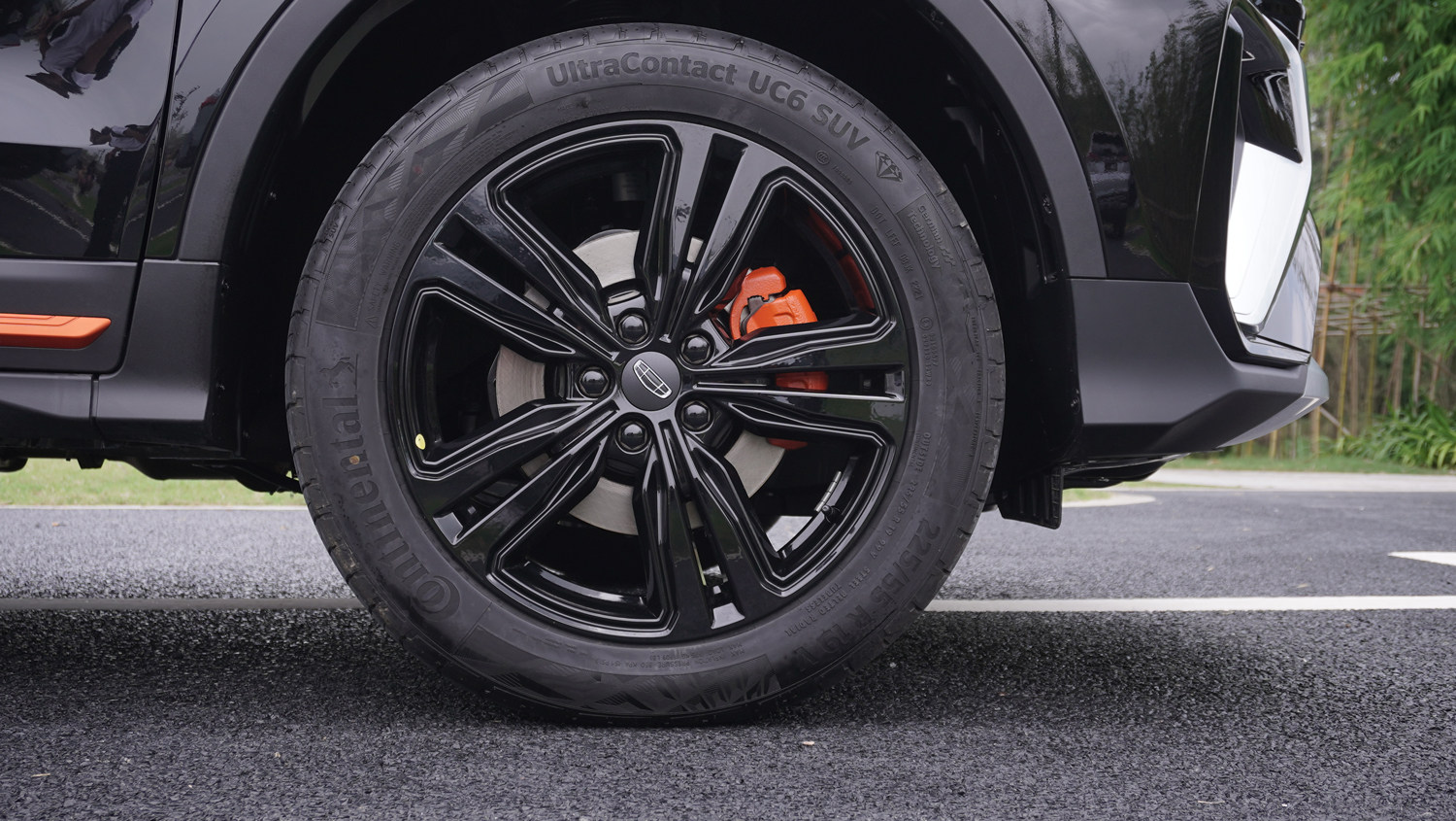 不过在轮圈部分还是做了黑化处理,配备的是225 55 R19的马牌UC6轮胎,并且卡钳也做了橙色的涂装。