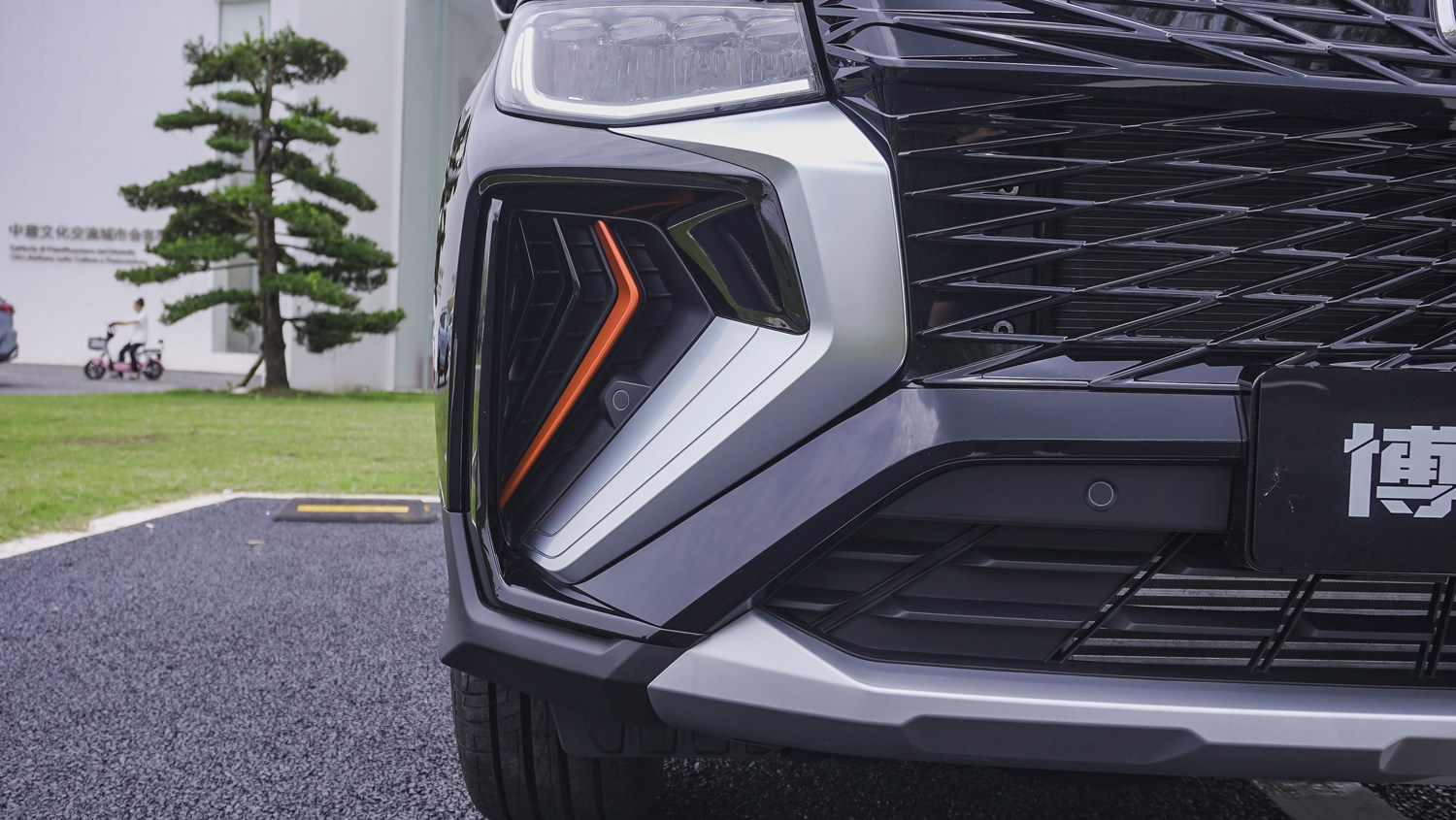 两侧还有大尺寸的进气口,而且并不只是装饰作用,并在进气口上也有橙色的风刀作为点缀。