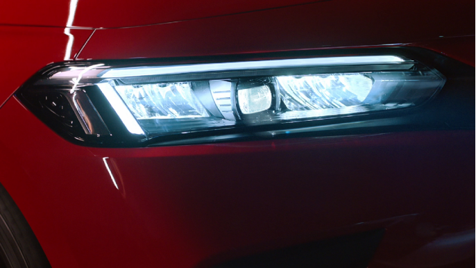 根据海外版以及东风本田最新的预告可知,全新国产思域前格栅采用了与前大灯组相融合的设计,形成一体式的造型。另外车头采用了更扁平化的设计,能产生更强的视觉宽度效果以及俯冲感。