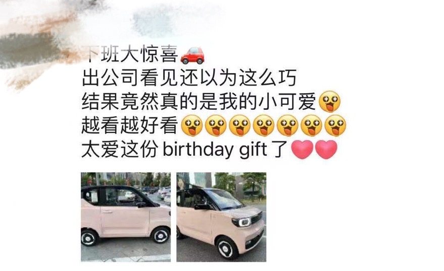 某天在VX看到一条PYQ,不禁感叹,时代真的在变。内容是关于身边的某位朋友,它本人是开的是一台雷克萨斯IS,在她生日之际为自己送上了一份礼物——五菱宏光MINIEV马卡龙(白桃粉)。
