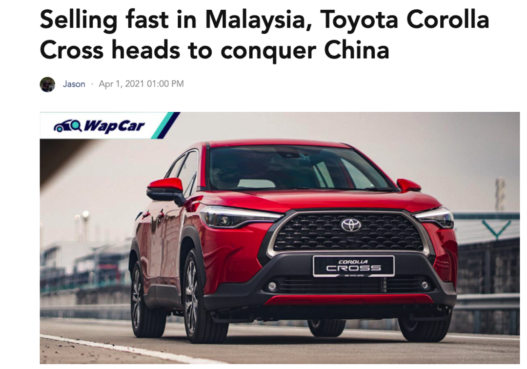 最近,则有外媒称丰田又一新车将会引入中国,预计在2021年底实现试生产,并于2022年正式发布上市。而这款车型就是SUV版的卡罗拉——卡罗拉Cross,借此与C-HR形成协同作用,攻占14-17万级SUV市场。