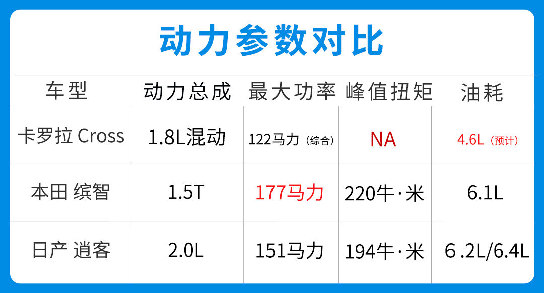 所以卡罗拉Cross就是同级别最低油耗合资SUV,本田缤智1.5T则是动力领先,稍大半分的日产逍客则能在空间上占优势,至于同宗兄弟、有着171马力的C-HR则是操控动力上获得最佳,所以说丰田能够同时占据两个优势地位,无论是动力操控亦或是燃油经济性。
