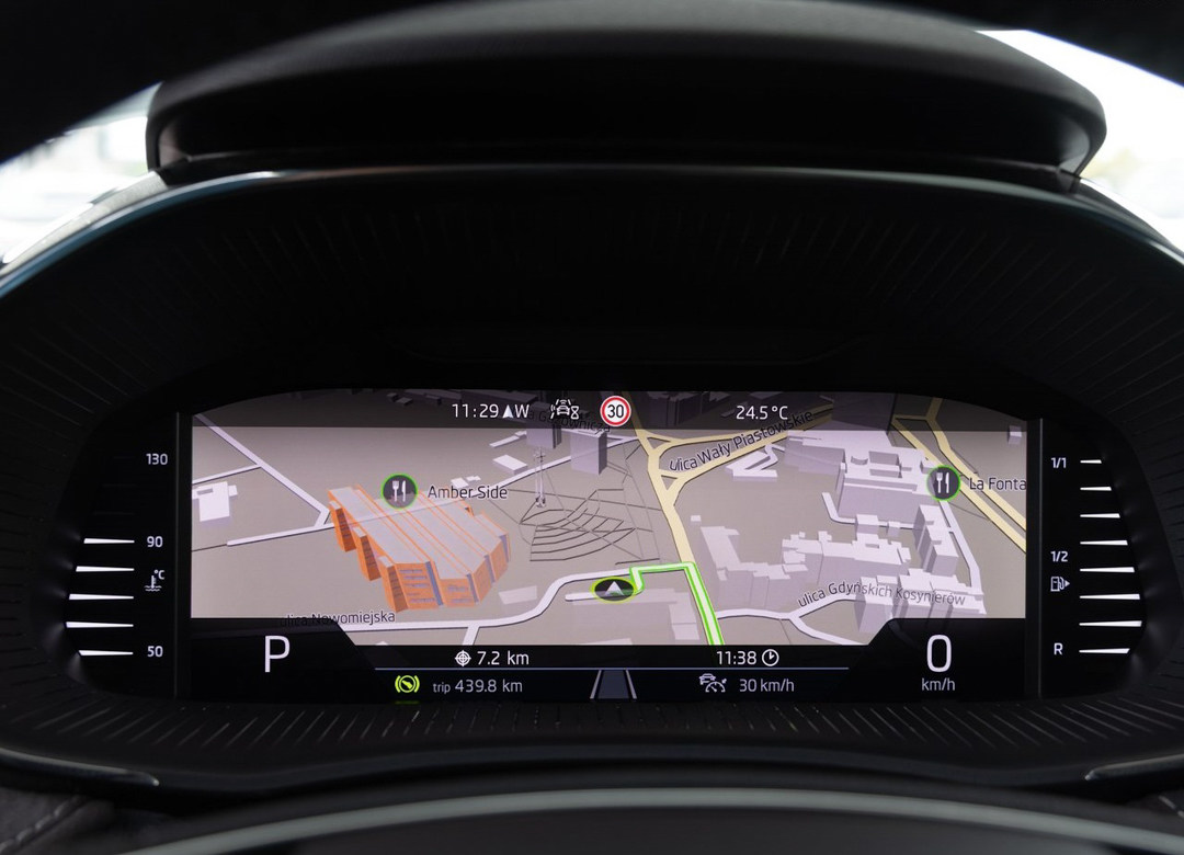 内饰方面,第四代Fabia采用了数字化的设计,除了最新的双辐式多功能方向盘之外,即便此次试驾的是入门车型,但依然配备了10.25英寸的液晶仪表盘以及8英寸的中控屏,系统支持多媒体、导航以及Apple Carplay互联映射,而且还能选装9.2英寸的中控屏。