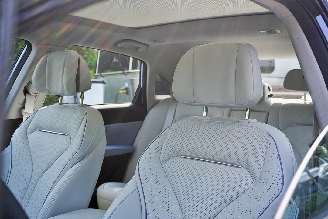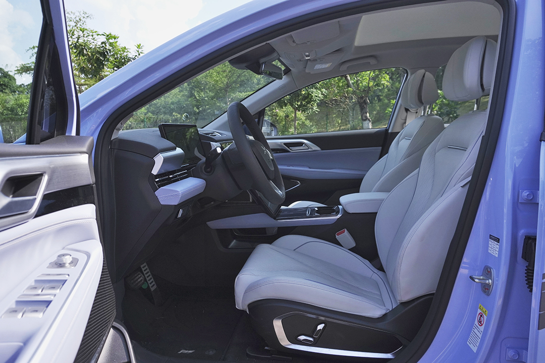 尽管坐垫长度足够,也无法在纵向承托住双腿,解决方式是座椅尽量往后调,但考虑到方向盘不支持前后调节,所以对个子一米七以上的人群都不算友好,在量产车交付之前,主驾座椅前端腿托区域有待调整。