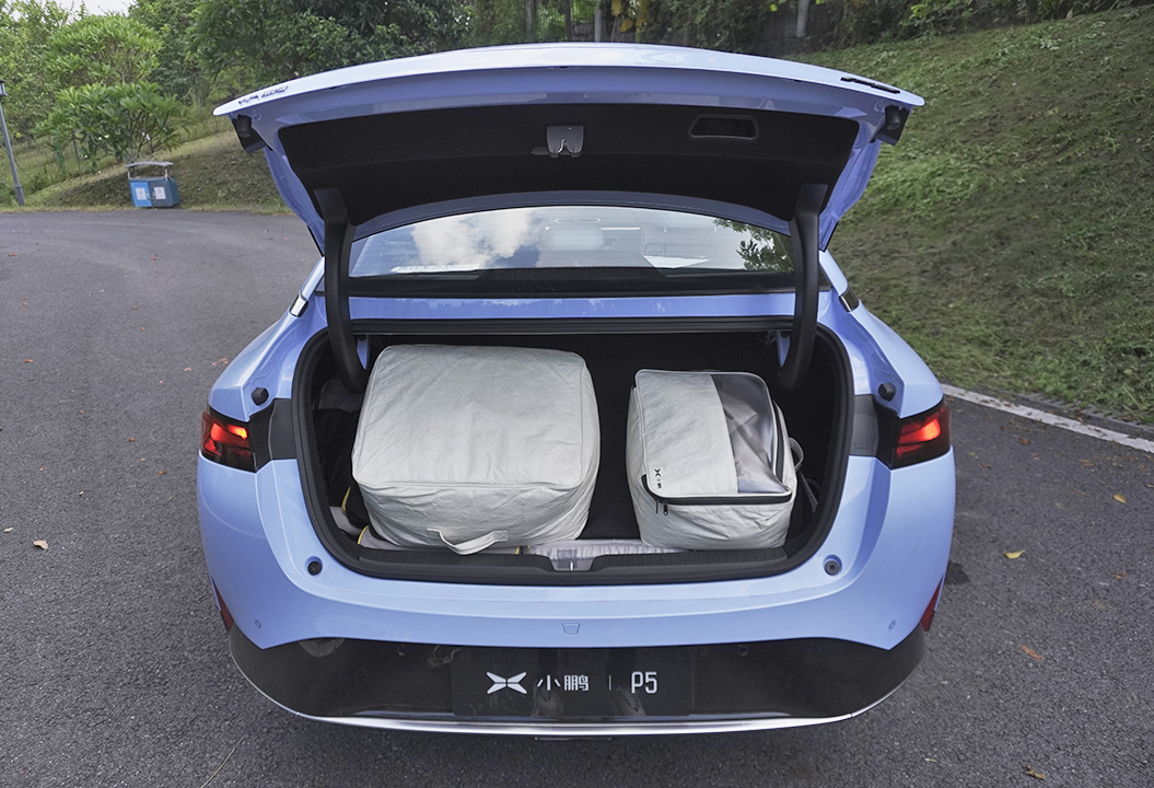 450L的后备箱容积不算大,再加上溜背造型对开口大小也有影响,只能说这个容积马马虎虎,日常无法装载更多的东西,如果用户有兴趣选购了一套官方的充气床垫、遮阳板、投影仪等设备,在全部收纳进后备箱时基本没剩多少空间可利用,所以开着P5去露营这种做法不会是常态,偶尔的放松倒是问题不大。