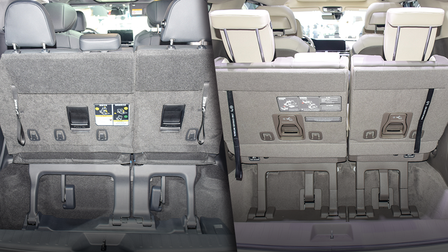 在空间的灵活性方面,丰田赛那和起亚嘉华的第三排座椅均可折叠安放于地台下方掏空的位置,形成一个较大的全平地台。
