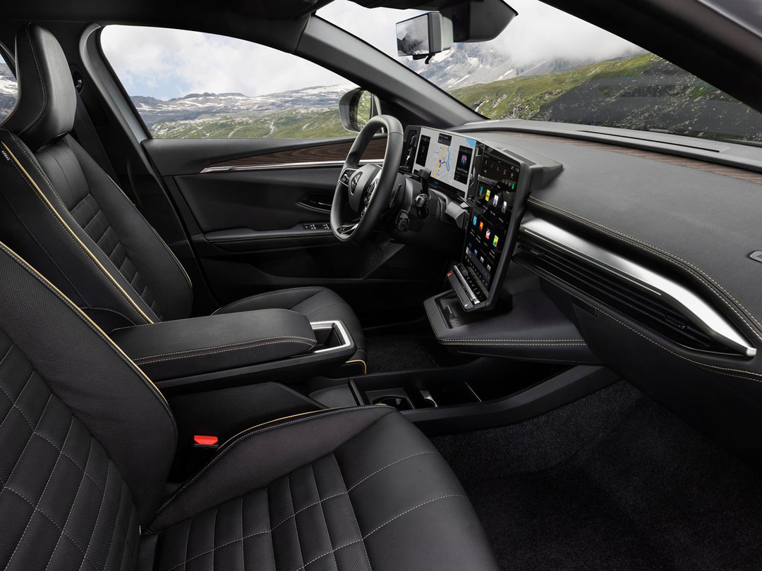 内饰部分同样出彩,从功能性角度来看,车辆配备两块大屏,并且中央屏幕(官方称为OpenR)倾向驾驶员,两块屏幕之间由空调出风口分割,通过触控来完成基本操作,为了增强实用性,在屏幕下方有一排按键,可以快速调节部分常用功能,这一点非常“不法国”。