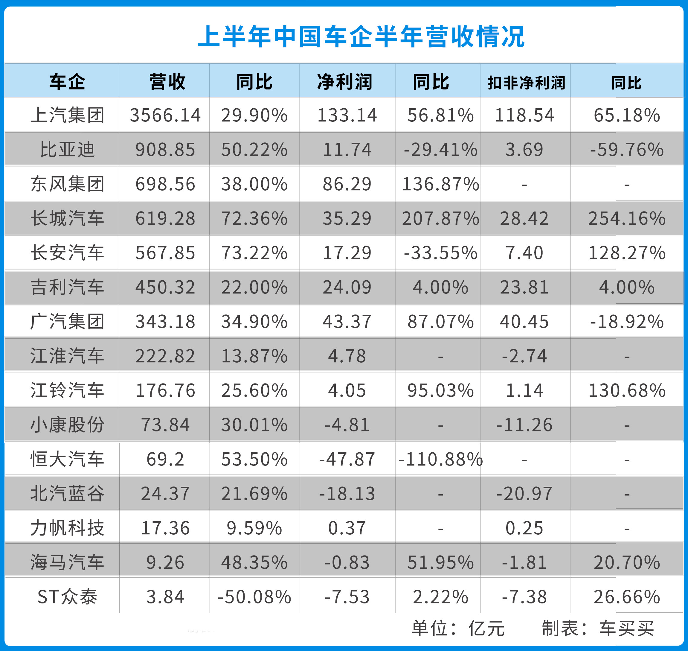 就如我们上学时期的考试一样,上市车企也有企业季度报告、半年报告以及整年报告,披露自己的营收情况。半年报告无疑就是期中考试了,截止于9月7日国内大部分上市车企也发布了自己中期业绩报告,所以我们不妨来看一下它们之间谁最赚钱?