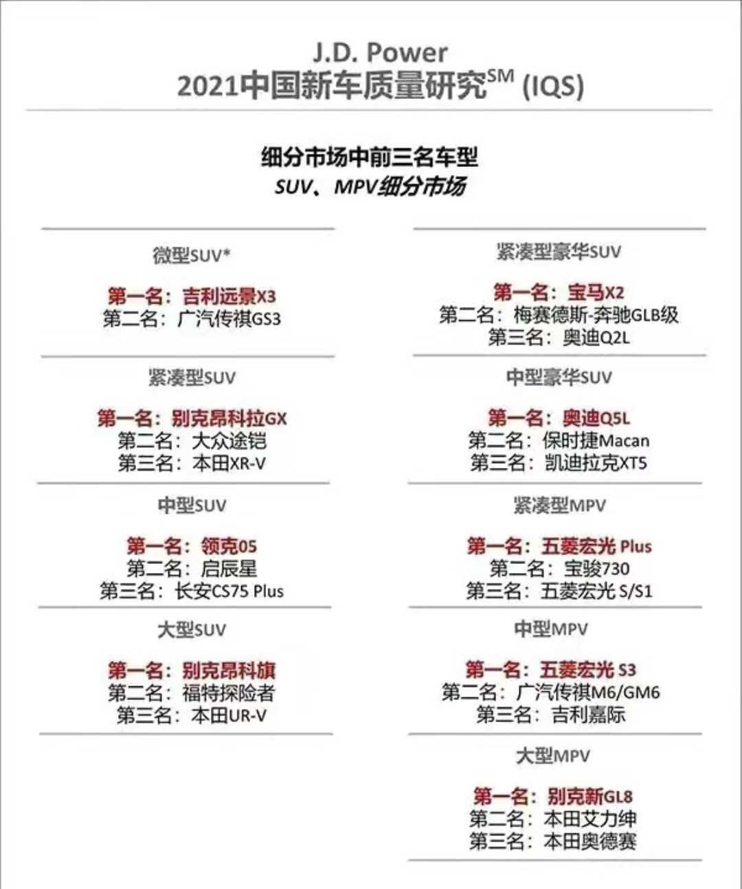 总的来看,通过品牌和车型排名来看,这份榜单的说服力虽然不是特别强,但对于消费者购车还是具有一定的意义,榜单有名不一定值得购买,但如果连排名都上不了,就需要自己理性思考,J.D.Power还是具有较高的权威性。