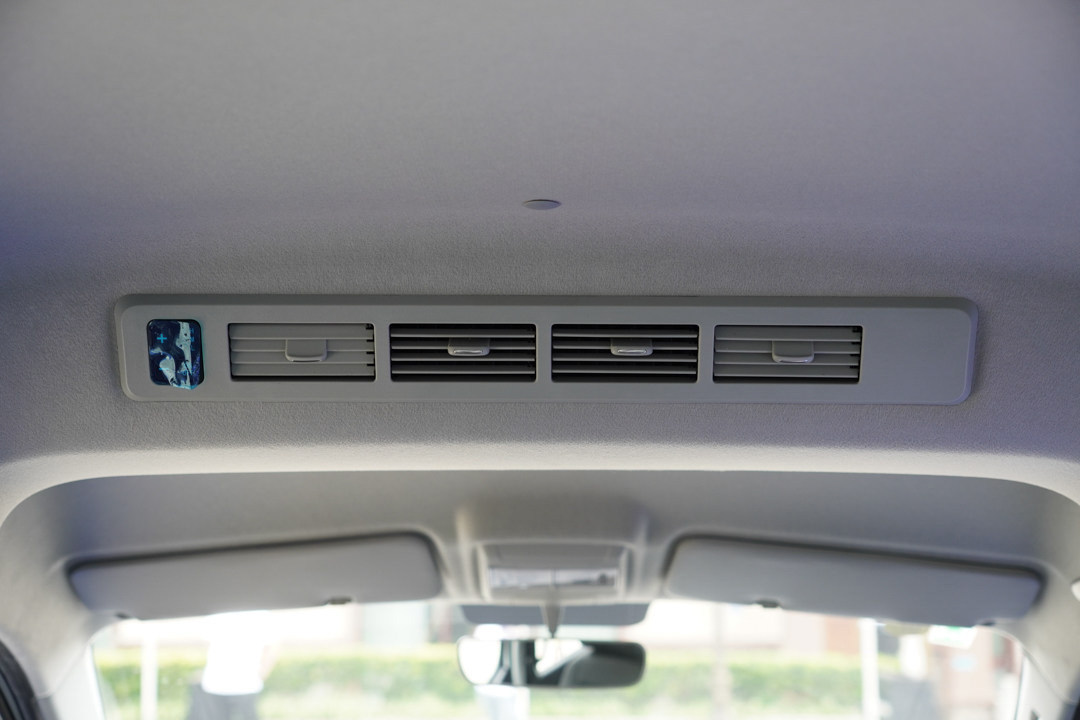 值得一提的是,金海狮提供了后排独立空调的选装,通过左侧的按键即可控制风速,对于经常使用后排座椅的家庭消费者来说还是很推荐选装的。