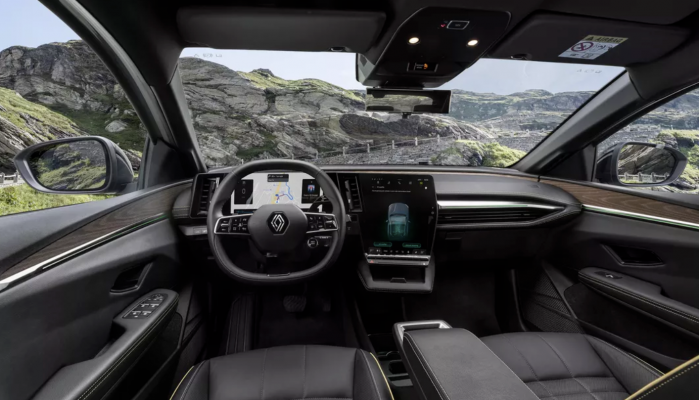 进入车内,雷诺Megane E-Tech的内饰采用了全新的设计风格,12寸数字仪表+12寸中控屏幕组成了一个倒L形OpenR数字屏幕,营造了浓郁的科技感。新车的中控屏下面还保留了一排钢琴式物理按键,为车内增添了几分精致感。