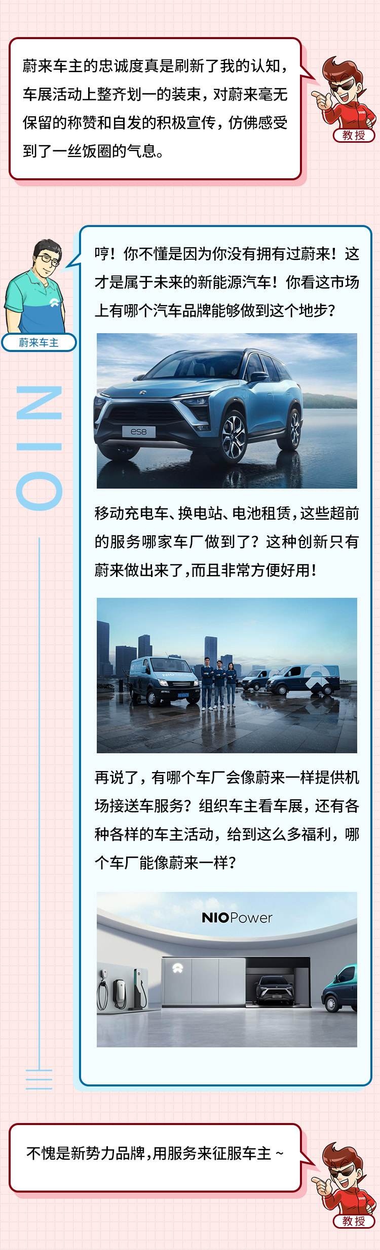 除此之外,新势力造车品牌里也有这样“高忠诚度”的情况出现,蔚来就是一个相当好的例子。从某大型车展期间蔚来车主在展台上“教育观众”,到早些时候的“车主声明”事件,都显示着蔚来的许多车主有着让人匪夷所思的“忠诚度”。