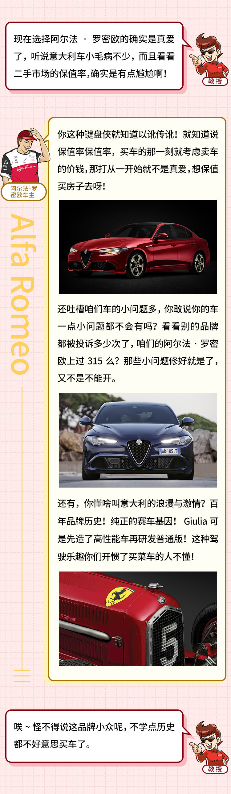 还有就是阿尔法·罗密欧的车主了,别看这个车主群体规模不大,但是他们对于阿尔法·罗密欧的支持那可是发自内心的!