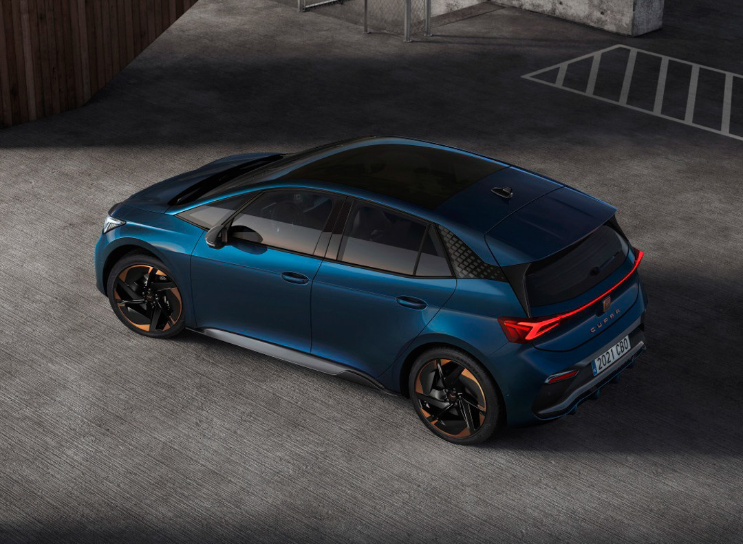 ID.3颇具特色的全景天幕、悬浮式车顶、大尺寸扰流器等元素均得到延续,这些张力较强的元素放Cupra Born的紧凑车身上,这种搭配很讨当下年轻消费者的喜欢。