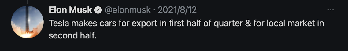 据特斯拉CEO埃隆·马斯克此前推特透露,特斯拉上半季度生产的汽车主要用于出口,下半季度则面向国内市场。目前特斯拉上海超级工厂年产能规划超过45万辆,月度产能规划预计在4万左右,从销量数字上看,特斯拉国内外需求旺盛,供不应求。