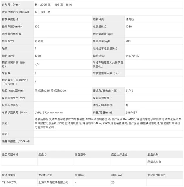 动力方面,根据申报的信息,新车将搭载国轩高科的磷酸铁锂电池,以及一台峰值功率25千瓦的电机。