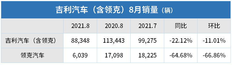 所以单从吉利品牌来看,表现其实并不差,至少环比7月和同比去年8月,都比较平稳,而吉利汽车整体销量之所以大幅下滑,最主要原因还是受领克拖累。
