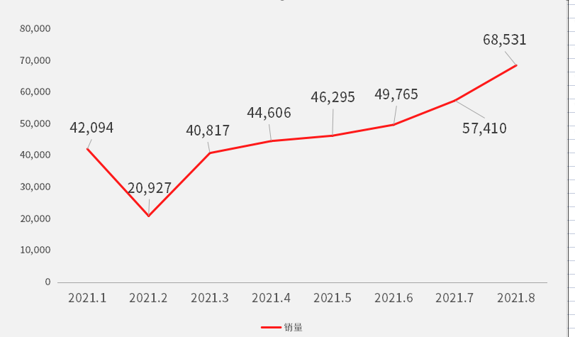 另外同样是缺芯片,我们看到比亚迪在今年前8月的销量可以说节节攀升,在8月份甚至创造了68,531台的单月最好成绩。而长安汽车在8月销量更是达到了838,380辆,同比增长49.51%。所以领克急剧下滑的主要原因归结为芯片短缺,是说不过去的。