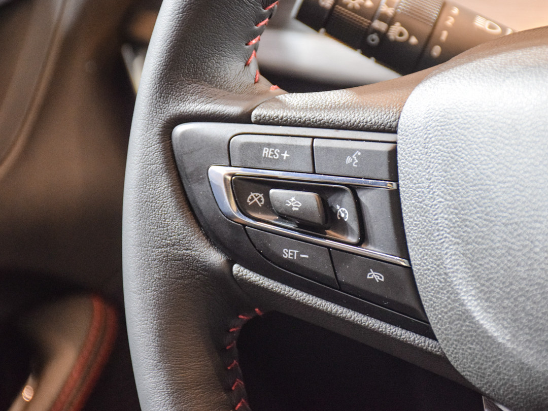 三幅式的方向盘采用平底设计,并且用带红色缝线的皮革进行包裹,彰显运动气息。两侧的多功能按键分工明确,其中左侧主要用于驾驶辅助的控制,而且右侧则是对车机系统的控制。