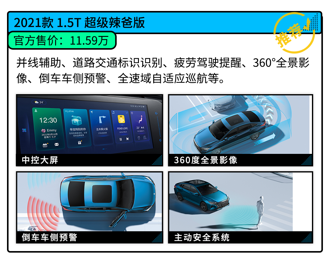 超级辣爸版比超凡萌爸版贵了2.2万元,但配置却增加了不少,包括12.3英寸全液晶仪表、并线辅助、车道偏离预警、车道保持辅助、道路交通标识识别、疲劳驾驶提醒、360°全景影像、倒车车侧预警、全速域自适应巡航等主被动安全措施等。总的来说,这2.2万元花在了实在的地方,所以买买君非常推荐。
