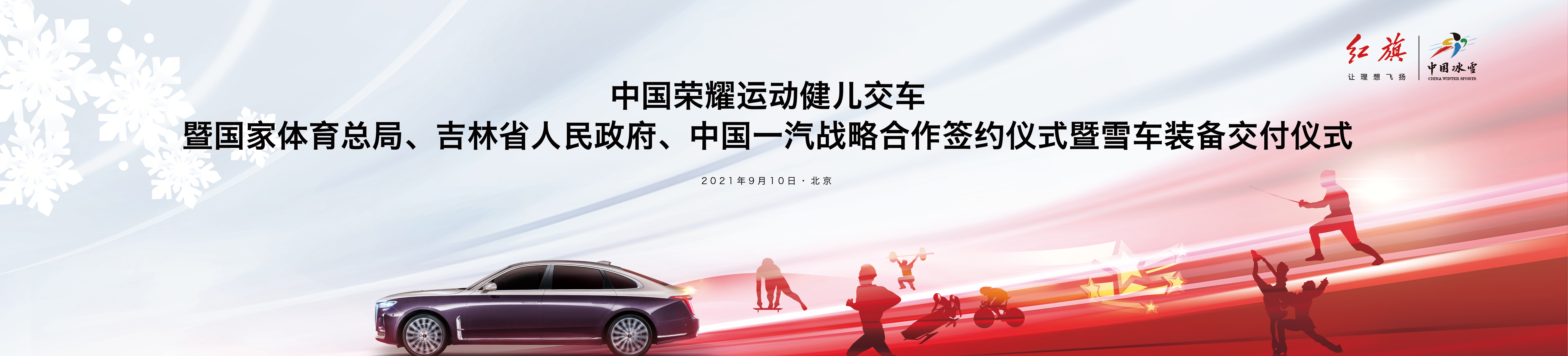 9月10日,“中国荣耀运动健儿交车暨国家体育总局、吉林省人民政府、中国一汽战略合作签约仪式暨雪车装备交付仪式”在北京首都体育馆举行,国家体育总局、吉林省委省政府、中国一汽、航天科技、新华网等单位重要领导出席仪式,与运动健儿代表、媒体和红旗车主们一同见证红旗助力建设体育强国的新起点。