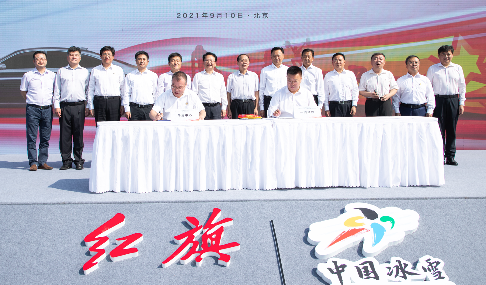 仪式当天,徐留平董事长表示:在冬奥期间,红旗将用焕新上市的红旗H5、HS5、HS7以及氢能汽车,为中国健儿提供全方位、全过程、全天候的车辆保障服务。签约环节中,一汽红旗汽车销售有限公司总经理陈旭、国家体育总局冬季运动管理中心常务副主任丁东,代表红旗和冬运中心共同签署战略合作协议,红旗品牌正式成为中国雪车国家队、钢架雪车国家队、雪橇国家队的战略合作伙伴。