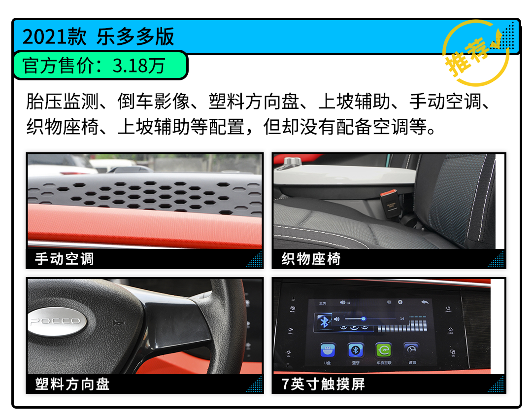 本次最值得买买君推荐的是2021款 乐多多版,在舒适配置上加装了手动空调,面对火辣辣的夏天,这5000元还是花的比较值。