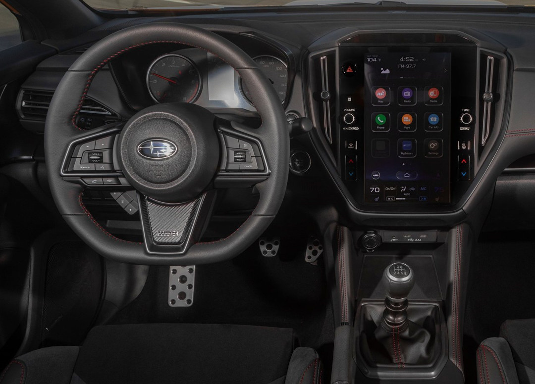 对于热爱驾驶的消费者来说,全新WRX依然是一款能让你燃起兴奋度的车型,平底式的三幅式方向盘、金属圆形换挡杆、机械手刹等位置均采用红色缝线进行点缀,并配上WRX的LOGO。而且值得一提的是,新车配备了机械手刹、机械仪表盘、金属踏板,目的就是保持该系列车型的纯粹。