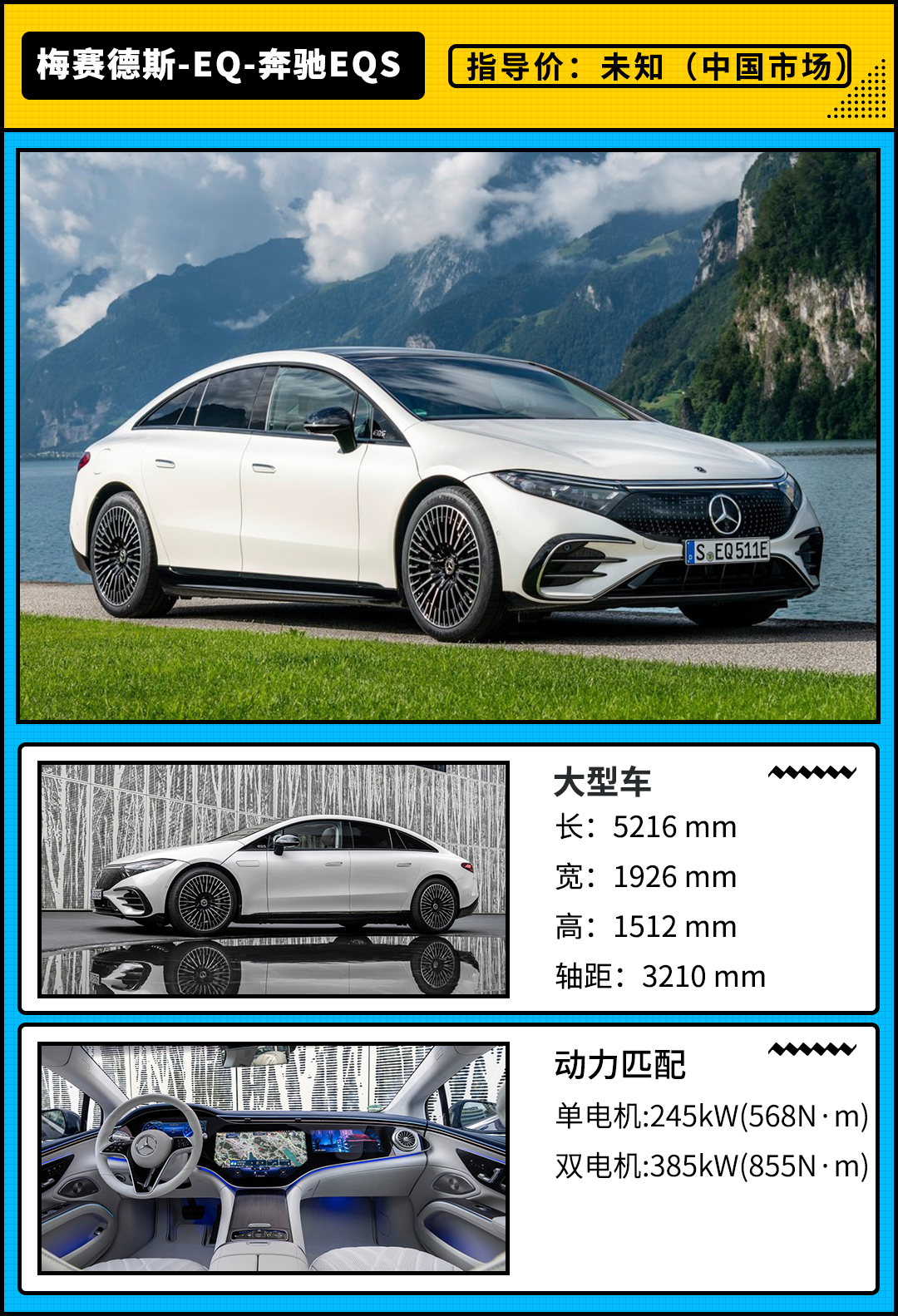 此次外媒所试驾的车型为奔驰EQS的450+版本,因此它是辆后驱单电机版本的车型,最大马力能迸发出333Ps(245kW),峰值扭矩为568N·m,官方给出的零百加速时间为6.2s。