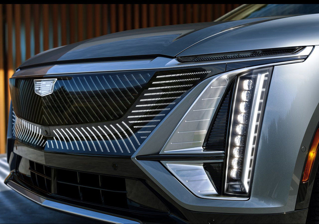 结合当前实车图,可以看到凯迪拉克LYRIQ整体造型极具科幻,硕大的遁形进气格栅内部融入多条放射状LED灯带,点亮后带来的辨识度相当高。