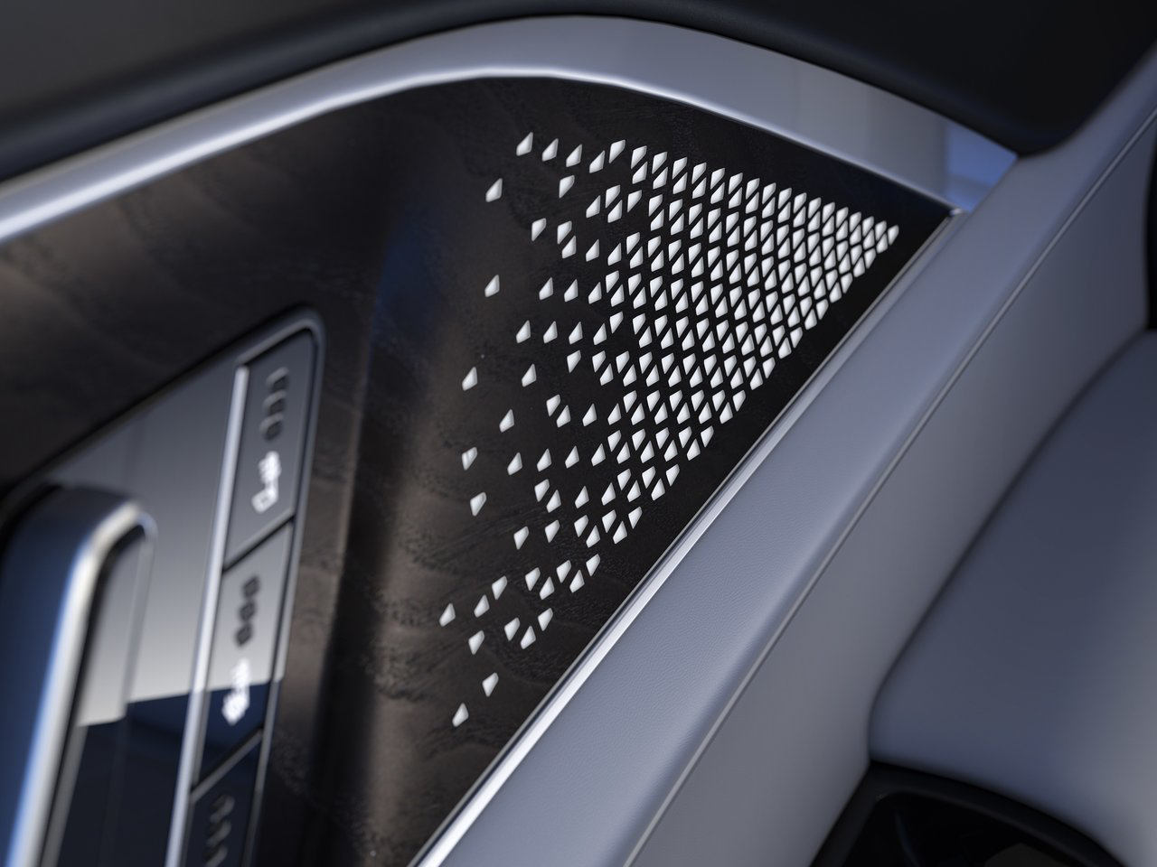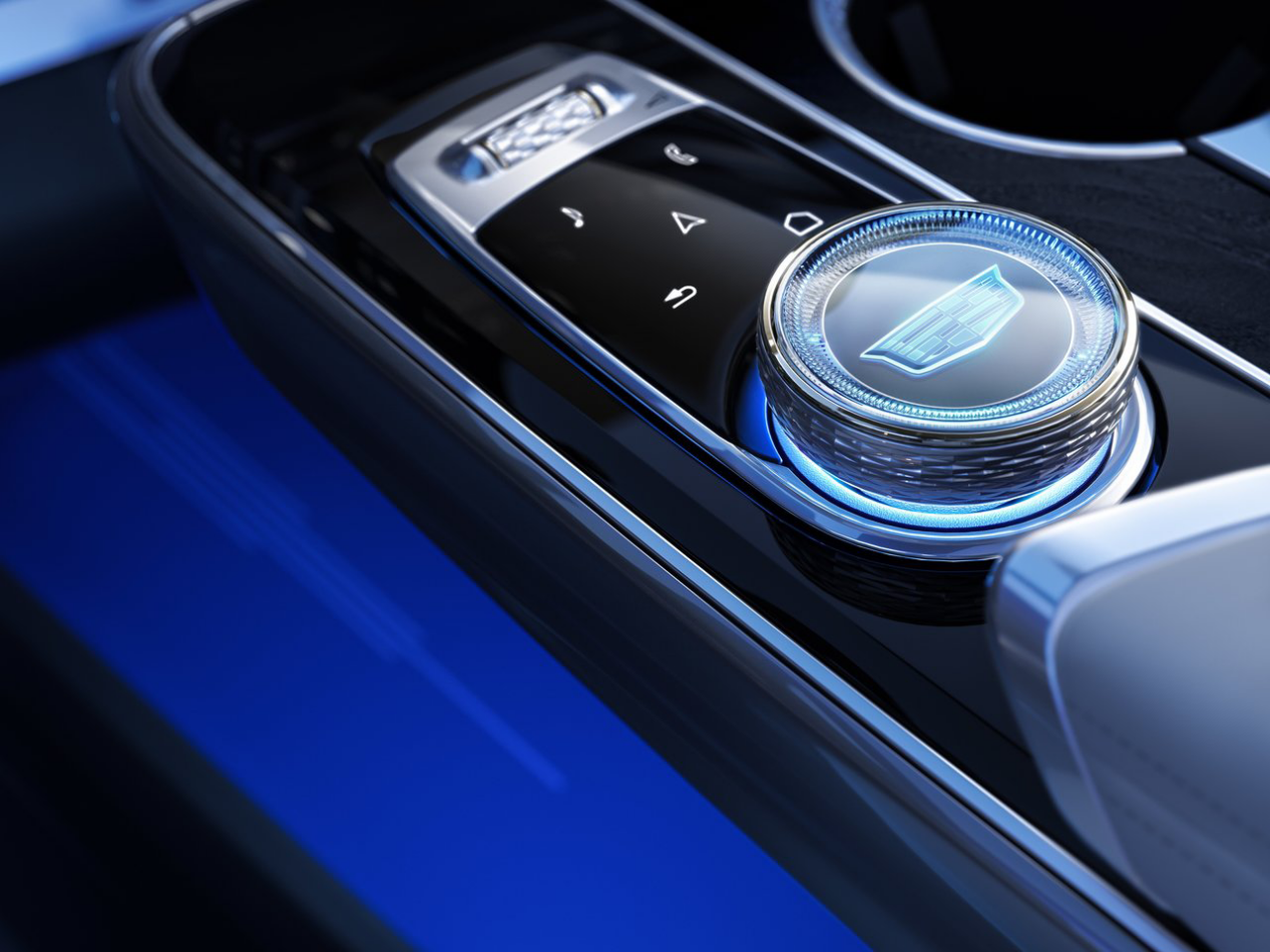 其次,在氛围感的营造上,凯迪拉克Lyriq善于运用灯光效果突显出智能科技座舱的氛围感。例如旋钮换挡操作按钮、门板参数化的装饰板,以及诸多储物格均有氛围灯光的点缀。