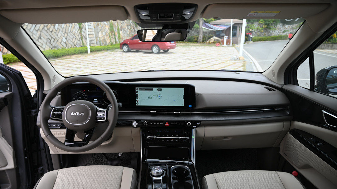 内饰风格如果熟悉近几年起亚设计的,相信都不会陌生了,基本照搬了K5凯酷的设计,12.3英寸双联屏的确营造出不少的科技氛围。而中控下方的操作按键是由实体+触摸按键的组合形式,虽然实体按键操作时的手感很紧致,但触摸按键就并没有任何反馈以及提示音,以至于很多时候都不清楚操作成没成功。