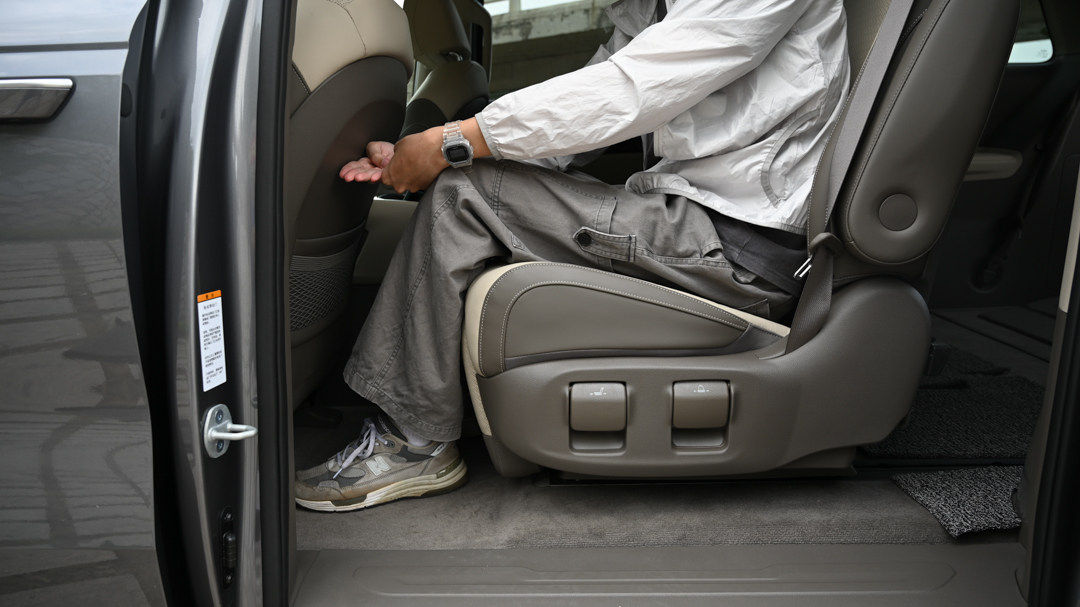 其实空间表现在嘉华身上并不用太过于担心,毕竟3米的轴距尺寸,在同级别车型里已经属于第一梯队。以教授180cm身高为例,前排座椅调整到合适的坐姿后,第二排挪到最靠后,其腿部空间超两拳,即使是挪到最前还能剩余有一拳四指。