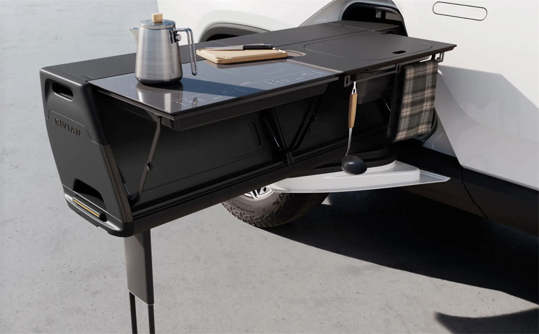并且在这里可以安放置一张餐桌,同时还提供了120V以及110V的家用充电接口,接上电源能够随时随地进行户外烹饪。