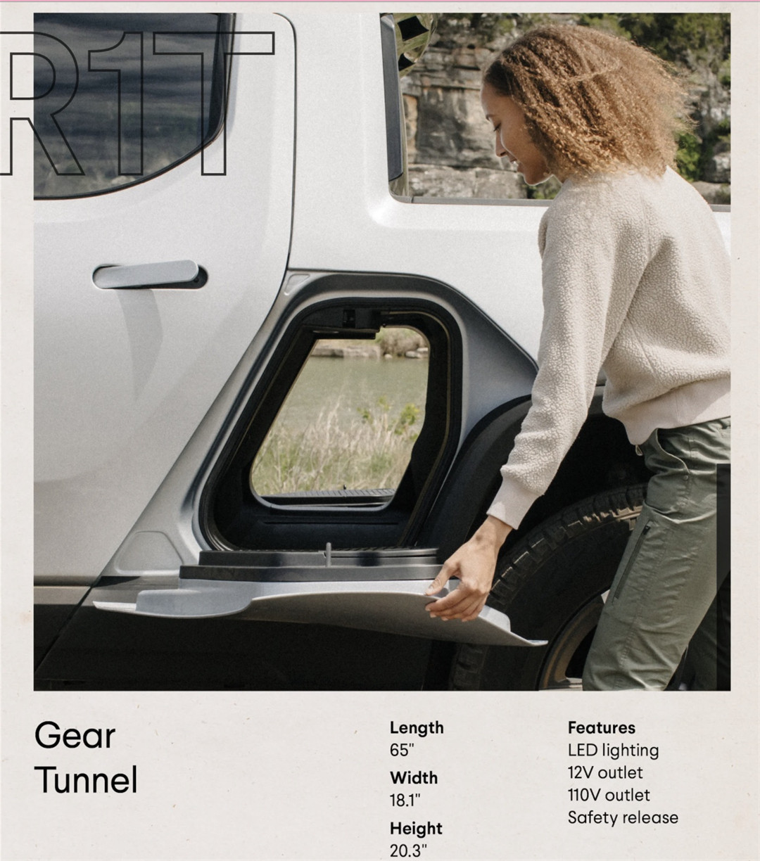 来到车侧更为亮眼,设计师特地设计了一个名为Gear Tunnel的储物空间,它位于后门两侧,采用的是左右两侧贯通的设计。