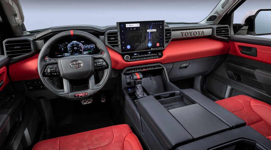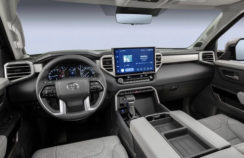 以往,丰田车系内饰都以实用性为主,不会有过于科技设计元素的存在,不过在新一代坦途身上显然有截然不同的视觉效果出现。其整体风格更加时尚,功能区域的划分也变得井井有条,还会根据车型版本搭配上8至14英寸不等的悬浮式中控屏。