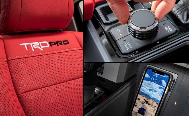 为了彰显TRD Pro版车型版本的身份属性,其相应还会有一些特殊的图案印记以及座椅刺绣加入。