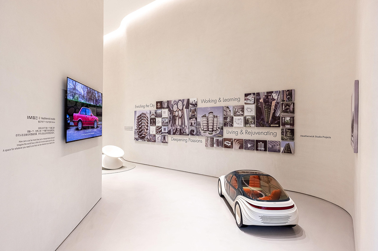 智己汽车的首家体验中心更多的意义自然也是在于形象展示,整个体验中心非常有设计感,从内到外都是纯白色系,视觉上极为清爽上档次,和传统印象中的4S店截然不同。而且体验中心内部的诸多造型和陈列,都是艺术品,例如“沉浸式座舱体验”、“艺术充电桩”等等,还摆放了一辆智己汽车和Heatherwick Studio联合打造的概念车AIRO。
