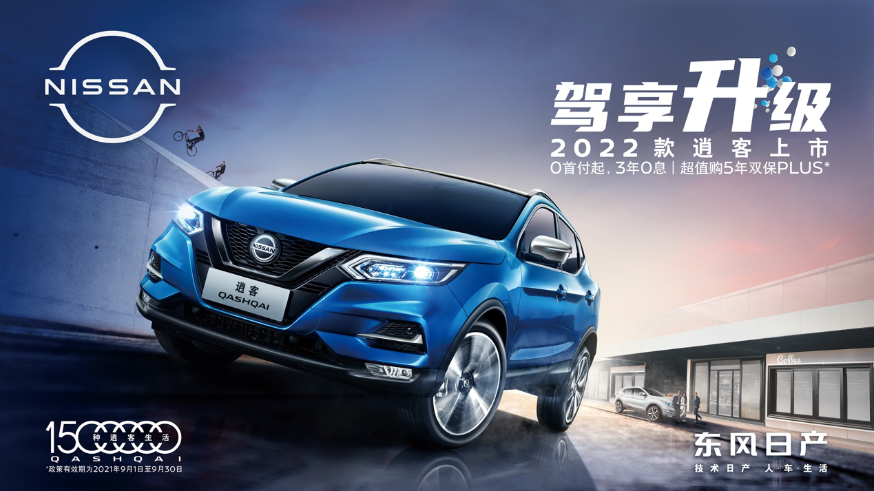 自2008年3月国产化以来,逍客承袭欧洲驾控基因,打造专业SUV底盘,针对SUV全路况进行研发,凭借质感美学、精准驾控、越级舒适、智能科技等优势,赢得众多消费者肯定和信赖,迅速开创中国紧凑型SUV市场新局面。上市至今,逍客历经多次升级,始终保持畅销势头,在中国市场累计销量强势突破150万辆,稳居15万级合资SUV销量冠军地位。为回馈150万消费者信赖和选择,东风日产针对2022款逍客推出了“0首付起,3年0息”、“超值购5年双保PLUS”等销售政策,助力消费者轻松拥有,畅享精彩出行生活。